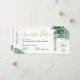 Hojas verdes de palmera (fronds) en un billete de avión tropical, simple, moderno y de diseño mínimo, ahorran la tarjeta de fecha perfecta para una boda en la playa o una boda de destino de isla tropical. Personalice todos los colores de texto y fondo haciendo clic en PERSONALIZAR MÁS. NOTA DEL DISEÑADOR: Esta es una versión ligeramente más oscura de las hojas de palma que la utilizada en otros diseños.