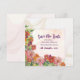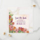 Celebra tu amor en flor total con esta boda bellamente diseñada, salvo la fecha en la que se muestra una flor de acuarela exuberante y pastas suaves y onduladas. Ideal para una boda en el jardín o celebración al aire libre, este elegante diseño combina flores románticas con tipografía refinada. El texto incluye los nombres Paula Elise Whitmore y Chris Alexander Bennett, pero puede ser totalmente personalizado con sus propios detalles, incluyendo nombres, fecha de boda, lugar e información de RSVP. Ya sea que esté planeando una aventura rústica al aire libre o una caprichosa ceremonia de los viñedos, esta invitación marca el tono perfecto.