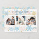 Esta tarjeta moderna y delicada es perfecta para enviar deseos de Navidad y Fiestas a familiares y amigos. El diseño presenta una decoración a lo largo de los bordes superior e inferior, con copos de nieve de diferentes tamaños y colores suaves. Tres fotos familiares se muestran en el centro. Esta elegante tarjeta es ideal para celebrar la Navidad y todas las fiestas durante la temporada invernal.