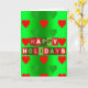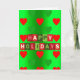 Esta alegre tarjeta de vacaciones personalizable presenta corazones rojos y verdes festivos y las palabras "Felices Fiestas" con bloques coloridos rojos y verdes en un fondo verde degradado.
