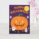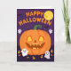 PrepÃrate para una noche espeluznante con esta divertida y festiva tarjeta de felicitación de Halloween. Con una calabaza brillante, fantasmitas adorables, murciÃlago y granos de maÃz dulces sobre un fondo púrpura de medianoche. Perfecta para fiestas infantiles, reuniones de adultos en Halloween y para cualquiera que ame el espÃritu juguetón de Halloween. Personaliza con tu propio mensaje y haz que tu celebración sea aún más especial.