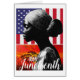 Celebrar la libertad y el legado Este poderoso dibujo en blanco y negro captura la esencia del 10 de junio -honrando la resiliencia, el legado y la liberación. La obra de arte muestra a una digna mujer africana en alto, su expresión refleja el peso de la historia y la esperanza de un futuro más brillante. La composición en capas simboliza el viaje de África a Estados Unidos, con la bandera norteamericana entrelazada para resaltar el pasado, el presente y la perdurable búsqueda de justicia. Esta tarjeta de saludo, diseñada con razón, sirve como un notable tributo a la fuerza, la fe y el triunfo, lo que la convierte en la manera perfecta de conmemorar el 10 de junio.