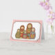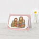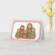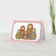 Tarjeta de saludo de muñecas rusas con cinco muñecas sonrientes.