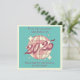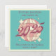 Tarjeta de saludo de estilo retro vintage para un recién nacido que incluye una bola de disco con un toque de tonos rosa claro y un guión groovy de estilo "2025" con un fondo de tonificación azul verde azulado.