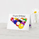 Tarjeta de felicitación con diseño de bolas de billar con texto personalizable para mantener, eliminar o cambiar.