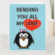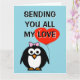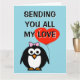 Tarjeta de felicitación con todo mi amor. Tarjeta de felicitación de pingüino lindo con globo de corazón. Tema de amor romántico de dibujos animados con texto personalizado. Envíala a novio, novia, esposa, esposo, pareja, amante, prometido, etc. Tamaño extra grande.