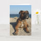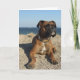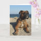 Perro cachorro de boxeador descansando en una playa para amantes del perro boxeador.