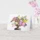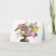 La tarjeta de bienvenida de Ann's Arransino es una pintura acuarela muy detallada de un ramo de flores con hermosos colores de rosa, amarillo, púrpura y azul con una variedad de hojas verdes. Las flores exuberantes se sientan en un jarrón de latón. Esta tarjeta tiene un pegatina coincidente en esta misma colección para terminar su saludo con estilo!