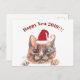 Cute gato con tarjeta de felicitación de texto del personalizado de Año Nuevo de Santa hat.