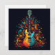 Tarjeta de felicitación de árbol de Navidad con guitarra navideña