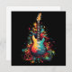 Tarjeta de felicitación de árbol de Navidad con guitarra navideña