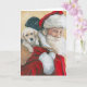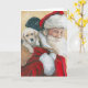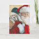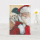 Esta tarjeta de felicitación presenta una reproducción de mi pintura original al óleo de cachorros de labrador retriever de Santa Claus.