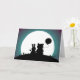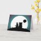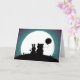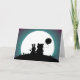 Tarjeta de felicitación de boda dulce con las siluetas de un conejo y un oso que sostienen un globo sentados en una colina mirando la luna. Personaliza el texto interior para que diga lo que quieras.