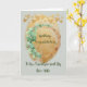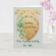 Tarjeta de felicitación para su nieto y su nueva esposa. El diseño tiene un fondo de color dorado y verde claro, con una corona de eucalipto y corazones de color dorado.