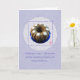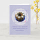 Esta tarjeta humorística incluye un pastel de bundt sobre un plato de vidrio cobalto y un portero, y dice: "Te hice un pastel — con grosellas e higos, avellanas y especias, y gazas de llovizna naranja..." En el interior, "Pero no encajaba tan bien en el sobre, así que... te estoy mandando mi amor, y mejores deseos en su lugar.¡Enhorabuena! ¡Sabía que podías hacerlo!"