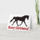 Navidades de caballo Bonitos saludando una carta con un caballo negro lleno de corazones y el saludo "Feliz Navidad" en el fondo. Perfecto para el ecuestre en su vida.