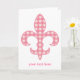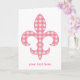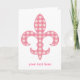 Personaliza tu propia tarjeta con un Fleur de lis de cuadros rosados en una tarjeta en blanco para un cumpleaños, aniversario, baby shower, anuncio de nacimiento o invitación a una boda o fiesta de Nueva Orleans.