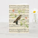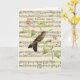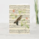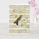 Una hermosa y encantadora ilustración vintage de un colibrí sobre un fondo de partitura musical. Sería encantadora como tarjeta de cumpleaños o para usar como tarjeta de nota para saludar a alguien. Puedes cambiar el texto según tus preferencias o eliminarlo por completo.