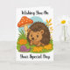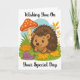 En esta tarjeta de felicitación de cumpleaños para un niño aparece una imagen adorable de un erizo con un caracol y champiñón. En la parte delantera de la tarjeta se puede leer "Deseándote en tu día especial" y en el interior de la tarjeta se puede leer, "Un cumpleaños maravilloso para reír y correr. Un día de erizos jugando al sol. Un cumpleaños con mucha diversión. ¡Feliz cumpleaños! ¡Esta tarjeta de cumpleaños tan bonita y colorida es perfecta para cualquier niño en su día especial!