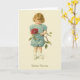 Tarjeta de felicitación Vintage / Victorian Birthday. ¡Niña adorable con una rosa roja gigante! ¡Saludos de cumpleaños!