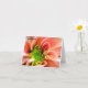 Fotografía de primer plano (macro) de una Dalia naranja. El texto de la tarjeta se puede personalizar o eliminar, según sea necesario.