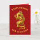 Tarjeta de saludo personalizado con dragón chino de oro con fondo de ventilador rojo, interior rojo con cámara de dragón dentro. Ideal para cumpleaños, Navidades, ocasiones especiales, regalos chinos de Año Nuevo, regalos de cumpleaños de Lucky Dragon, decoración asiática de restaurantes, etc. ・ ¡Feliz Año Nuevo Chino del Dragón de la Madera 2024! ・ Usted es un Dragón, si nace en estos años: 1928, 1940, 1952, 1964, 1976, 1988, 2000, 2012, 2024.