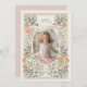 Este diseño, Corona de vacaciones floreciendo, es un giro moderno en un motivo clásico de Navidad. Enmarcado con peras pintadas a mano, naranjas, bayas, ramitas de pino y delicadas flores, combina la riqueza de las plantas botánicas de invierno con un estilo fresco y pictórico. Los tonos suaves de rubor y la elegante pancarta le dan un aspecto refinado pero cálido, lo que lo hace perfecto para mostrar fotos familiares con alegría navideña.