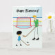 Desee que el jugador de hockey papá sea feliz Día del Padre con esta divertida tarjeta de felicitación del Día del Padre. El diseño de esta carta muestra a un padre y un niño personalizado pasando el disco de hockey de ida y vuelta por la pista de hockey.