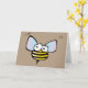 La pequeña y tonta abeja está zumbando por ahí. Cuerpo rayado negro y amarillo y grandes ojos googly. Personalizar cambiando el color de fondo y/o agregando texto.