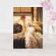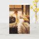 Tarjeta de felicitación de la playa de James Tissot. Pintura al óleo en lona a partir de 1878. El artista francés James Tissot dedicó la mayor parte de su carrera a pintar temas diarios del Victorian. La playa representa a una mujer joven bonita con el pelo rojo que lleva un vestido blanco de la playa del Victorian con las cintas amarillas que fluyen. Los salones del chica en un sofá dentro pero la playa y el mar se pueden ver a través de la ventana detrás. La mujer se inclina con su cabeza en su mano y mira fijamente fresco apagado en la distancia. Un gran regalo para las fans del arte de Tissot, del Victorian, y de la moda del vintage.
