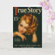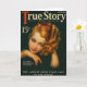 Envíe mensajes con glamour vintage usando esta impresionante tarjeta de felicitación con una auténtica portada de la revista True Story de los años 30. Este exquisito diseño exhibe una cautivadora belleza de pelo quemado con olas de dedos en cascada contra un rico fondo esmeralda, perfecto para quien aprecie la elegancia clásica y el romanticismo eterno.