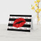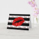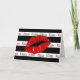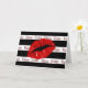 Tarjeta de felicitación con labios de beso rojos con rayas en blanco y negro y besos, apropiada para cumpleaños, día de San Valentín, aniversario o simplemente porque sí.