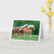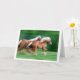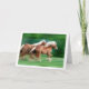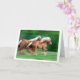Pares de caballos del palomino que galopan en una raza a través de una tarjeta de felicitación del campo.