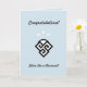 Tarjeta de felicitación de moda con un triple diamante elegante y un sol naciente con tres estrellas en la parte superior sobre fondo azul claro. Ideal para graduación, nueva casa, matrimonio, nuevo trabajo, promoción, aniversario o cualquier otro evento memorable de la nueva vida. ¡El texto se puede personalizar!