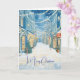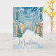 Redescubre la magia de las fiestas con la tarjeta de saludo de calle azul nostálgica de Navidad.