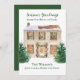 Tarjeta de Felicitación de Navidad Personalizada con Pino en Acuarela para Hogar. La plantilla está configurada para que la personalices.