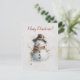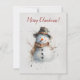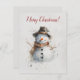 Feliz tarjeta navideña en estilo retro con acuarela pintada de un muñeco de nieve en un gorra