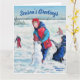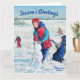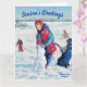 Nieve fresca: los niños de la escuela están en el patio haciendo su primer muñeco de nieve del año. Esta pintura se completó hace más de 30 años. Me emociona tener esta imagen ahora en una tarjeta de Navidad.