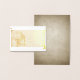 Tarjeta de invitación plegada con cubierta de globo vintage en papel de aluminio y papel viejo desgastado en el interior.