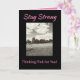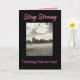 Expresa tus sinceros deseos a una superviviente de cáncer de mama con un mensaje de esperanza de "Mantén la fuerza". La tarjeta negra y gris audaz con toques de rosa tiene una imagen inspiradora de un niño volando una cometa en un día soleado. El verso positivo de fe, esperanza y amor en el interior enviará tus pensamientos de apoyo y cuidado.