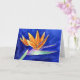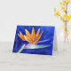 El vibrante ventilador, como la corona de pétalos naranjas de un pájaro de una flor del paraíso, contrasta con el profundo y lujoso fondo azul real. El cuadro de flores de arte acuático ofrece una vista de perfil del pájaro de la flor del paraíso. Esta flor es conocida como la Flor de la Grúa en Sudáfrica. Personaliza esta tarjeta de bienvenida de flor de pájaro del paraíso o tarjetas de notas con tu propio texto e imágenes usando el botón "Personalizar It" para crear un regalo especial de flor de pájaro del paraíso!