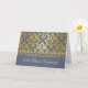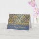 Elegante patrón de damasco dorado contra un fondo azul gris 50ª carta de felicitación Reunión Clase 50ª. Puede ajustar el texto según sus necesidades, cambiar el tipo de letra, el color y el tamaño.
