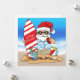 Tarjeta de felicitación de tabla de surf Santa