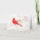 El rojo brillante de un cardenal oriental masculino se enfrenta a ramas nevadas para este feliz saludo.