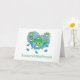 Ranas con la tarjeta de felicitación de los pacificadores. El texto dice "enhorabuena!".