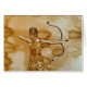 Bosquejo del chica del tiro al arco hecho con café y tinta en una tarjeta