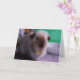 Tarjeta de felicitación que ofrece un conejillo de Indias de mirada inquisitivo y sucio.