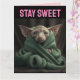 TARJETA DEL DÍA DE SAN VALENTÍN DE GATO SPHINX ADORABLE EN MANTAS. APROPIADA PARA ENMARCAR. DENTRO DICE: TEN UN DÍA DE SAN VALENTÍN DELICIOSO