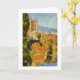 Esta tarjeta de felicitación es de una pintura en colores pastel del Bello Artes de Judy Adamson de la catedral de Herford en el otoño. Los colores ricos de los árboles que rodean la catedral se reflejan en la horqueta del río, en la cual las gaviotas están flotando. Esconda el interior para que usted añada su propio mensaje. También disponible como impresión.