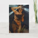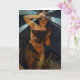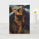Tarjeta de felicitación del lucero del alba de Alfonso Mucha. Pintura al óleo en lona a partir de 1902. El artista checo Alfonso Mucha creó una serie de alegorías astrales en 1902. El lucero del alba ofrece a un chica hermoso envuelto en una capa escarpada de la noche. Ella sostiene su mano derecha a su frente de la cual emane una luz suave. La pintura complejo se adorna con una frontera del laurel. Un gran regalo para las fans de Alfonso Mucha, de las pinturas del nouveau del arte, y del arte del vintage.